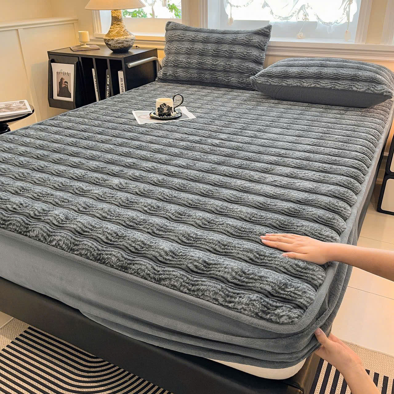 Thiết kế ga chun ôm sát đệm, giúp cố định chắc chắn, không xô lệch khi trở mình. Đường may viền tỉ mỉ, chắc chắn, giữ form đẹp và dễ dàng trải phẳng. Họa tiết lông chồn nổi bật, mang phong cách hiện đại, sang trọng, phù hợp với nhiều không gian phòng ngủ từ đơn giản đến cao cấp.