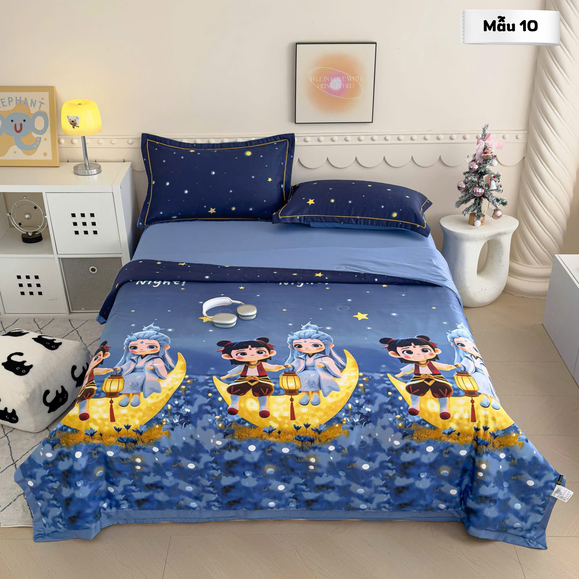 Bộ gồm: 01 chăn chần bông 2m x 2m2, 01 ga bọc nệm bo chun, 02 vỏ gối 50 x 70cm