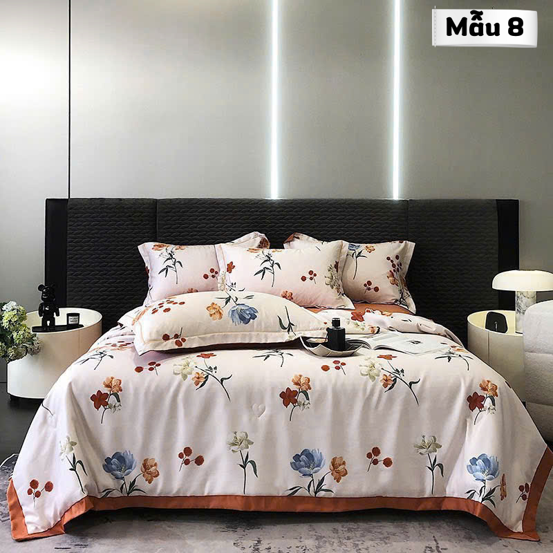 Tên sản phẩm: Set 4 món chăn ga phi lụa Thái họa tiết kèm chăn chần bông cao cấp